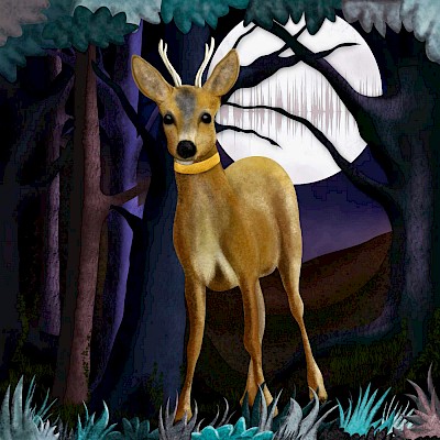 She untied her golden garter and put it round the roebuck’s neck as a collar, and she plucked rushes and wove them into a soft cord to use as a lead. Then she led the little beast on and they walked deeper and deeper into the forest.