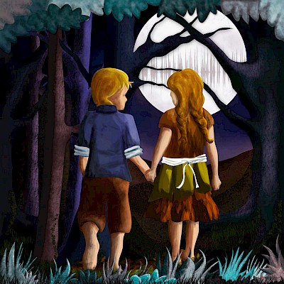 In the shadow of a large forest, beneath the great arches of twisted branches, lived a poor woodcutter with his wife and two, young children. The boy was called Hansel, and though he was still very young, he showed the promise of his tall farther. His sister was named Gretel. She was much the same size as her brother, but she had a cheekiness about her that spread from one blonde plait to the other.
