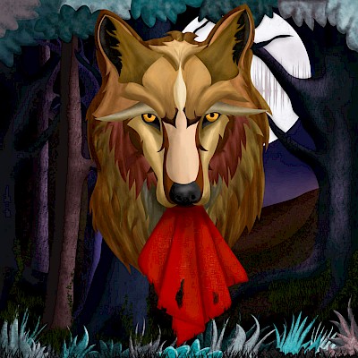 By and by, she came across a wolf. He was lying on a big rock, soaking up the sun as it glinted and danced through the leaves of the great oaks and ashes. His chin was leaning on a paw, and he watched the little girl approach. Little Red Cap really was very young, and she did not know that some wolves are not the noble creatures of the forest that they should be, and will do anything to sate their hunger. So, when she saw the great furry beast, his beautiful grey pelt turned almost yellow in the warm sun, she smiled her biggest smile.